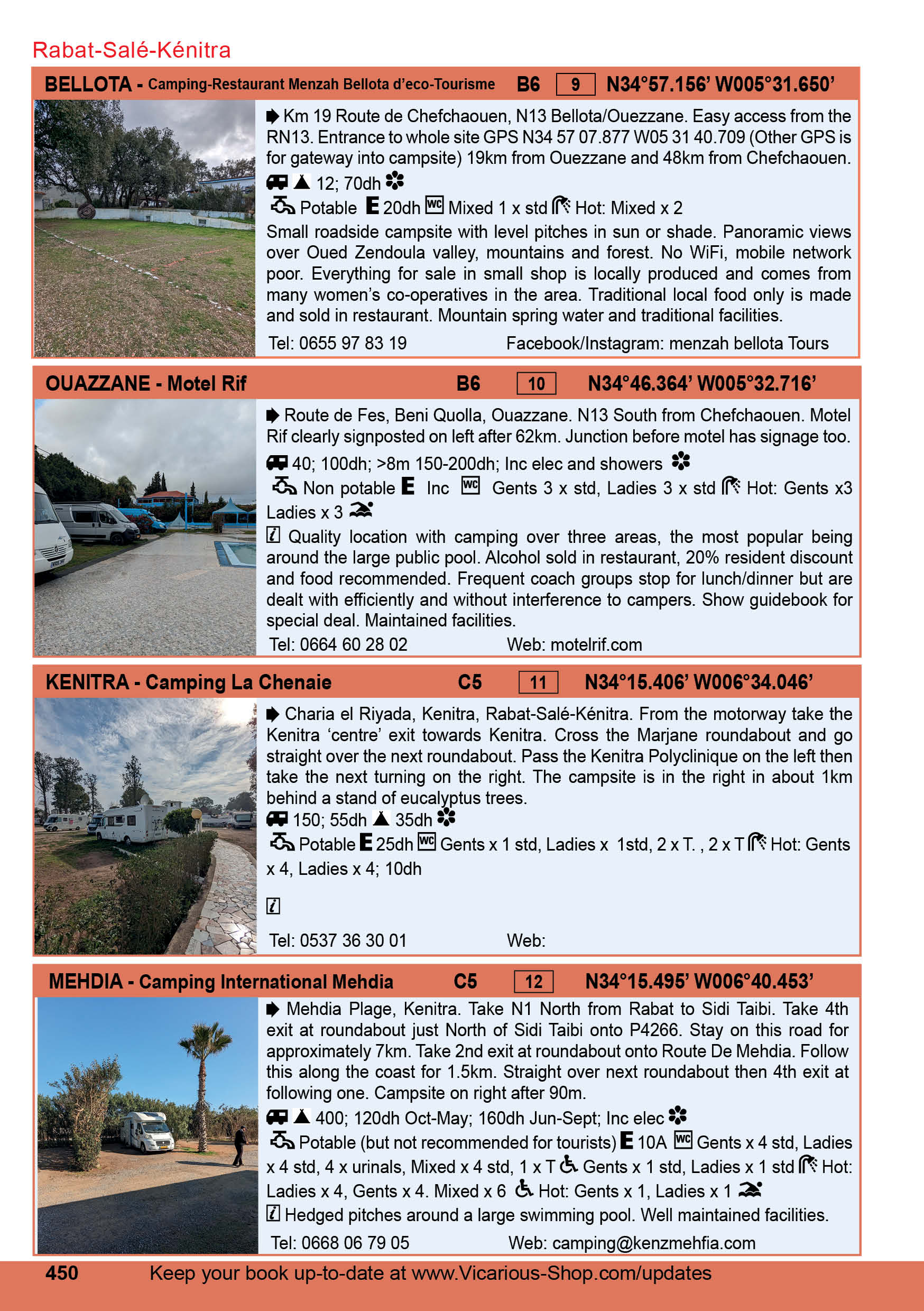 The guide provides brief details of a decent number (I don’t know if this is all campsites in Morocco) but therein lies the issue. The guide format is very similar to the Vicarious aires guides which are great but I would have liked a little more detail about each campsite & photographs of the facilities/restaurant/bar/etc.
